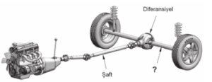 45. Şekilde soru işareti (?) ile gösterilen ve diferansiyelden aldığı hareketi tekerleklere ileten güç aktarma organının adı nedir?